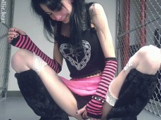 Sweet goth teen Dollie Bear in boots fingers her wet pussy in puplic Gif